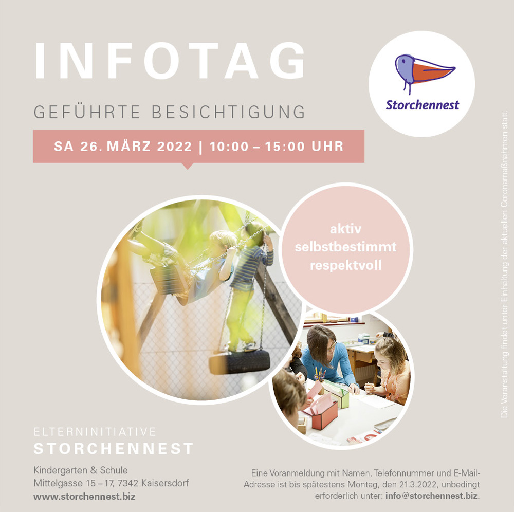 Es gibt wieder die Möglichkeit, dich durch das Storchennest führen zu lassen! Lerne die Räumlichkeiten kennen, schau dir an, wie Kinder hier ohne Druck lernen und erfahre, wer und was hinter dem Storchennest steht.