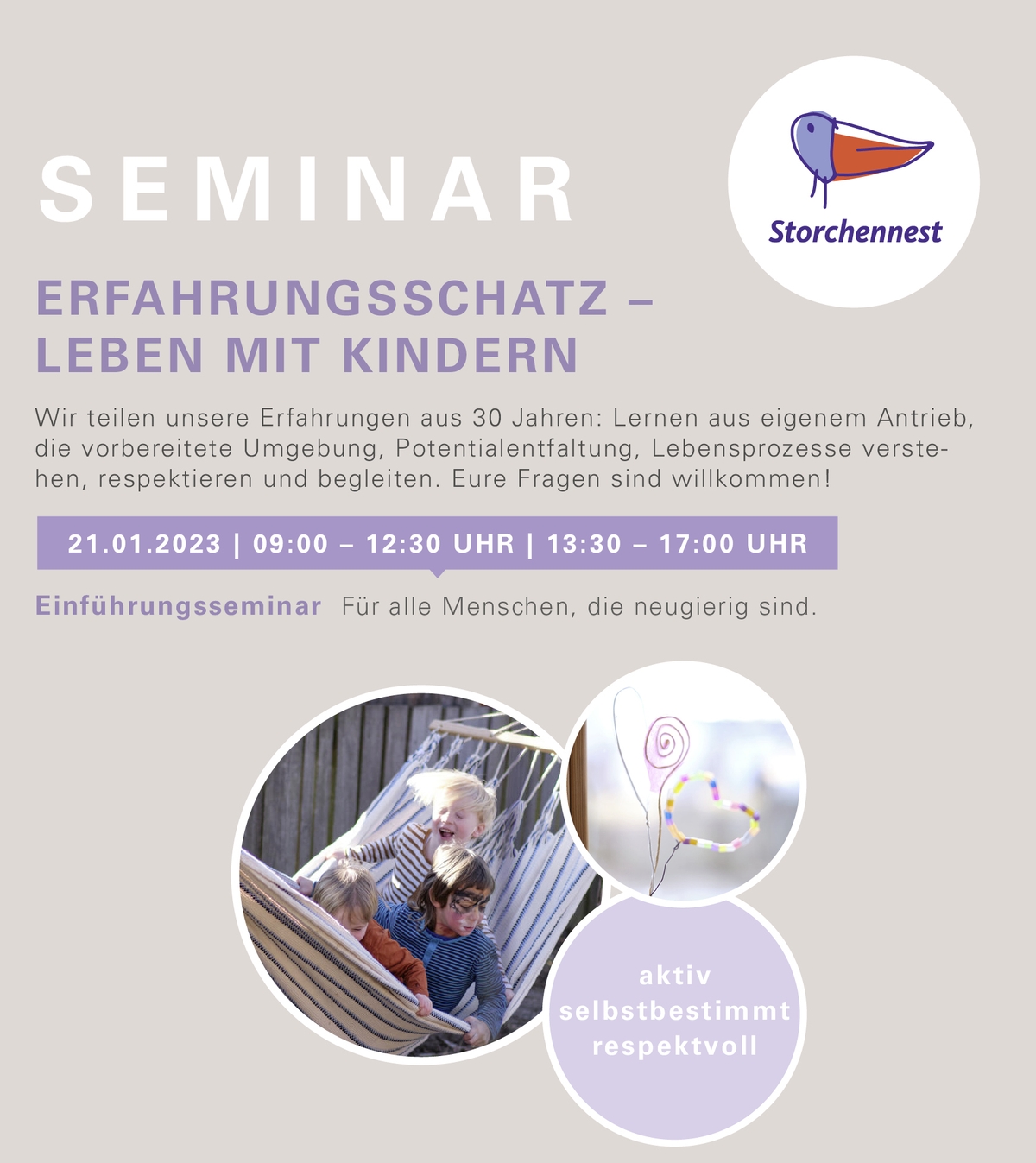 Einführungsseminar "Leben mit Kindern - Erfahrungsschatz Storchennest" 21.01.2023 | 09:00-17:00 Uhr